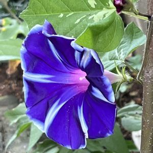 こんにちは☺️PEKO地方晴れ☀️PEKOの庭では久しぶりの朝顔 花友さんに頂いたタネ から涼しげな色合いのお花咲きましたよ🤍💜💜
