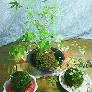 苔、三姉妹 アイビー、もみじ、ワイヤープランツ、伸びてきました🍀