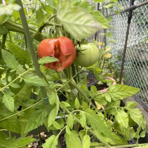 初めて育てた、大きいトマト🍅 初めてなった 美味しそうな🍅 やられた😭😰😭😰😤😤😤