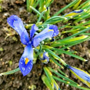 こんばんは😃🌃 今日は、1日雨☔でした😅 ふと庭を見たら青い花が咲いていました(,,・д・)ポカーン なんだろ~? 名前を教えてくださいf(^_^)💦 たぶんミニアイリスかとf(^_^)