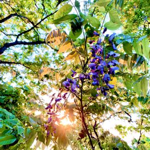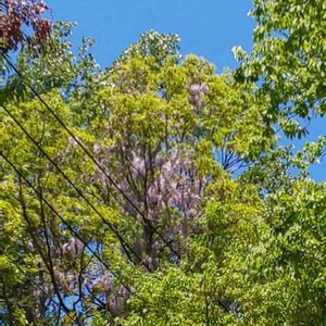 大木の幹を借り、上へ上へと延びて咲く山藤🎵 あまり、上に行ってしまうと誰にも見てもらえないよ😛