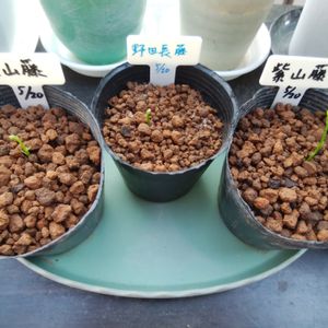 藤の種が3つとも発芽しました。 少し前に白い花のフジ(野田藤)の種も拾ってきてポリポットに蒔いたのですが、昨日確認したらカビが生えてブヨブヨになって腐っていました。 白野田藤も我が家に無い藤だったので残念ですが、残りの2種類の藤に期待してこのまま育てていきます。