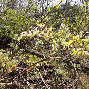 茨菰山 (511m) ヤマフジ(山藤)、マメ科 フジ属のつる性落葉木本、別名 ノフジ(野藤) 🌼花言葉 「優しさ」「決して離れない」「恋に酔う」 🌼ノダフジ(野田藤)は左上巻き、ヤマフジ(山藤)は右上巻き 🌼フジ(ノダフジ)とヤマフジの2種が日本固有種