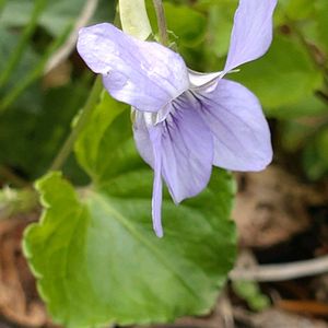 高尾山に小さいニョイスミレ(ツボスミレ)の花が沢山咲いて可愛いです♡🌿 山地の林の湿った所に生える多年草です。 花の直径は8mm位で日本で見られるスミレの中では1番小さいスミレです。 花弁に濃紫色の筋が目立ちます。 距は短く球形に近く、托葉に切れ込みが無いのが特徴です。 スミレ科スミレ属