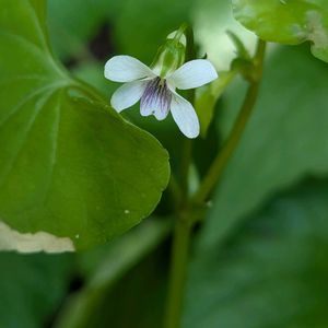 No.222 ツボスミレ 葉の形がハート形で、花は白いです。 5/14撮影、庭にて