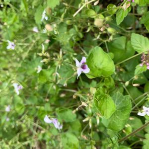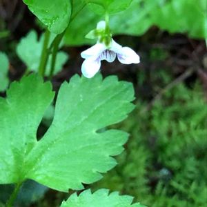 ツボスミレ 山の中 小川の近くで見つけました。 花は1センチ以下 写真で撮って花弁のスジに気付きました。 小さい小さいかわいい花です🤗
