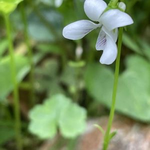 こんばんは☺️ 珍しく夜投稿です。 こちら決してドクダミのお花ではありません😆 ツボスミレ 如意スミレ 花友さん助言にて時期的に今日は咲いてるかと見てきました~ お花アリアケスミレに似た感じ。 🌿丸っこい。 🌿が仏具の如意に似てるそうです。 距、短く太い。 ツボスミレは、ジメっとしたとこにお顔出します。 こちら湧水でる湿地の遊歩道から身を乗りだし漸く撮れました😆 名前ついてたので確実なんですが、出来れば自分で確定予想したかったです😌 な~んて💓 超超初心者🔰のくせに希望だけは主張してます😆