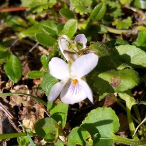 ニョイスミレ(如意菫)、別名ツボスミレ(坪菫)。2022年に放置していた鉢に自然に生えてきて、2024年、そこから種が落ちて地面に生えてきた。 今年も小さくて可憐なニョイスミレが咲いているのを見つけました。今のところ1輪だけ。 ————— スミレ科スミレ属 Viola verecunda 多年草 国内では、南千島・北海道・本州・四国・九州に分布、国外では、樺太・朝鮮・中国・ウスリー・アムールに分布。