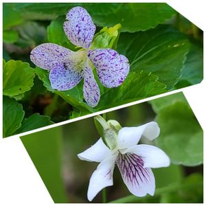 小さなツボスミレ🤍と銅葉スミレのラブラドリカ💜 ラブラドリカがもう少し葉っぱが黒いと良いなぁ( ´◡` ) 実家ではもっと黒くてカッコいいのよねぇ… 今日は3枚投稿しました(*ᴗˬᴗ)⁾⁾ペコ
