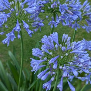 アガパンサスが最盛期を迎えています。 アガパンサスの種類色々 1️⃣アガパンサス ツイスター? 葉が細くしなやか。 2️⃣アガパンサス ファイヤーワークス? 蕾の数が半端ではない‼️ 葉がツイスターよりやや太く常緑タイプ ツイスターとの違いがはっきりしない? 3️⃣アガパンサス ポッピンパープル 赤紫色 4️⃣? 水色にブルーの筋。🩵 5️⃣? 紫色に濃い紫の筋。💙