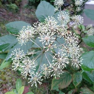 ウドの花 父が育てていたのを植えてから6年くらいですが、土が合わないのか株数が3株まで減ってしまいました。 春の芽🌱が出たのを食べられる日は、来るのかな❓ お花を見られるだけでヨシ👍️としないとね😃