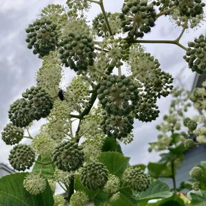 ウドの花 花が咲き実が成り始めました⚪️🟢✨ 色々な虫達も次々と来ています🪰🐝🐜✨