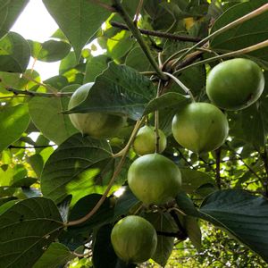 シナアブラギリ・・・ 散歩中の植物園で、シナアブラギリの木に実がなっていました。初めて見ました😃サイズもカリンくらいの大きさで立派💕