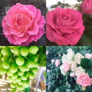 こんばんわ☺️ ↖️アーリエス+ ↗️オール4ラブ ↙️巨峰🍇 ↘️パルテール 昨日の産地さんのバラたち✨ 温室の外に 巨峰🍇作ってた☺️ 秋にまたおいでって言われた 実が熟すから🌸🌸