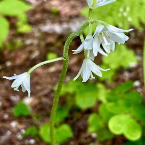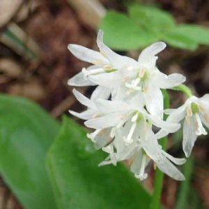 のんびり森林散策♪🚶♀️〰︎ 存在は知っていました! 咲いてる姿、真っ白なツバメが飛んでる… 感動モノです🥹💕 「ツバメオモト」燕万年青 ユリ科 花名の由来は葉がオモトに似ていて、葉が開くのを刀の鍔に見立てて、鍔の芽からツバメや、果実の色がツバメの頭に似ている からナドの諸説があります。