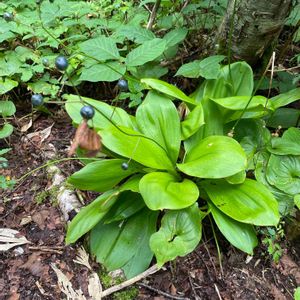 昨日の午後散歩🚶♀️ 近くの神社⛩ ツバメオモト(ユリ科ツバメオモト属) 分布:北海道、本州(奈良県以北)西日本では絶滅危惧種 5~7月、山の雪が溶けた頃に白色の美しい花を付ける。名前は同じユリ科のオモト(万年青)に葉の形が似ており、果実の形がツバメの頭に似ている、またはツバメが飛ぶ頃に開花することから。 東北森林管理局から 実が瑠璃色という特徴的な色🔵になるそうです でもこの神社夏祭り前に境内の草を刈ってしまう為 去年は見られませんでした😓