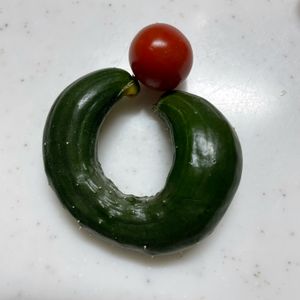 こんにちは プランター畑の農園主 前picで残ってしまいました💦 グリッと円を描いた🥒キュウリ 緋色の🍅ミニトマトを一個添えたら ルビーリングになりました🙌 (๑・̑◡・̑๑) こ〜なりたくて曲がったかな? 🥒キュウリ 🍅ミニトマト