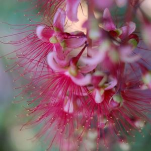 赤いサガリバナはこちら。 赤の方は今が盛りと咲いています。花と同時に実もなっていました。