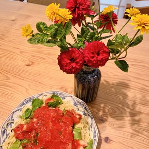 畑のバジルが大活躍する夏の食卓 今日のお昼はタコの冷製パスタ🍽 夏らしいお花も エキナセア サマーチェリー コレオプシス アサヒ