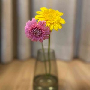 午後から雨予報だったので、テラスに避難中のミニガーベラ スパイダーさん.* 𖥧⚘ よく観ると、蕾が2つも·͜·ೢ ⋆* 嬉しい事が重なり、少しずつ体調も回復してきました...♡ 少しずつ、少しずつ🦥。:°ஐ..*