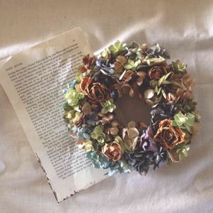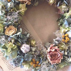 様々な色のアジサイのドライを組み合わせたグラデーションのキレイなミニリース。
