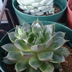 キノコ以外も成長期♡ 手前の大和美尼さんは、最近花芽が伸び出した(﹡ˆ﹀ˆ﹡)♡ 奥の野ばらの精さんは、下にお子さんがいらっしゃるの(ღ˘⌣˘ღ) 早くぽかぽかお日様に会いたいね(*´︶`*)