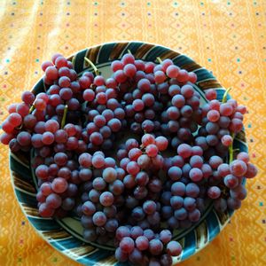 おはようございます(^^) 🍇デラウェア🍇 今朝 手の届く所収穫しました😃 昨日は孫が採り 皆で食べました^_^ 甘いです😃