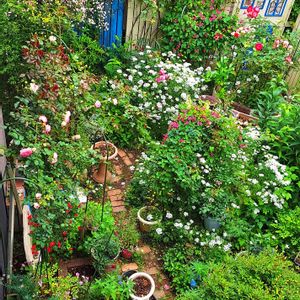 2025年5月 左側 マイガーデン.。o○ 2階の窓から🪟 今年は オルレア🤍が沢山 こぼれ種の競争ね 毎年映ろう違った 景色が楽しみです