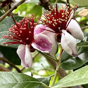 ①フェイジョアのお花が 今年もポツポツ咲いています❤️ 昨年はなぜかたくさん実がなった のですが、今年は少なそう😅 ②いつ植えたかわからないほど 鉢に植えっぱなしの ギボウシ(ホスタ)2種 冬には姿を消しますが、毎年 元気にキレイな葉っぱを見せて くれます💚 お花はあんまりパッとしないし すぐ終わるのが残念💦