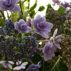 ガクアジサイ、残って咲いていた花です。 2度目の剪定をしてきました。 《雨に唄えば》という品種です。 いただいた時はピンクでした。 来年こそはちゃんと石灰撒いて、ピンクにしよう!!