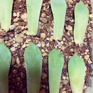 エケベリア属 🌱桃太郎の発根🌱 霜の朝のような赤い根を想像していましたが、根の成長点だけが赤く、あとは半透明なのですね。 やはり、桃太郎の発根率は、低いですね。 今のところ発根が確認出来たのは3枚だけです。