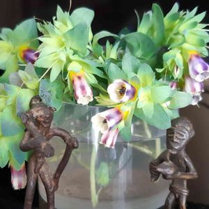 花終わりのセリンセ・マヨール 花色は抜けてしまったけど 葉っぱ、綺麗なので インドの楽隊人形と。 種、少しだけど採れました 🙌来年またね👋😃✨