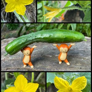 胡瓜のお花と、やっと取れた胡瓜です。ちょっぴり形が変ですが、採りたては美味しいはず😊