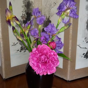 端午の節句🎏 家族が送ってくれた鯉のぼりの出番🎏🎏 ちょうどうちのアイリスが初開花❣️ 早速お持ち帰りです♪ 季節を感じる事はとても大事。 健康のために大切なんですよ。 柏葉無しの柏餅風のお菓子でも作ろうと思います🍡🍵