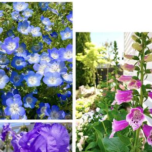 ジギタリス、ジャーマンアイリス開花しました✨ 満開のネモフィラと。
