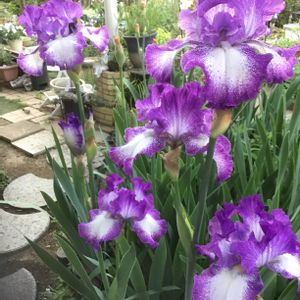 ジャーマンアイリス 今朝は1輪しか咲いていなかったのに、出掛けて帰ってきたら、こんなにたくさん咲いていました💜 季節が進むとともに密になってくる庭です。
