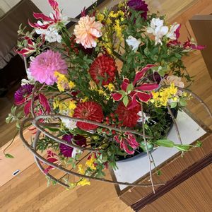並列形のリバーシブルアレンジメント💕 4月のレッスンで作りました。 かなり微妙なものができました😅
