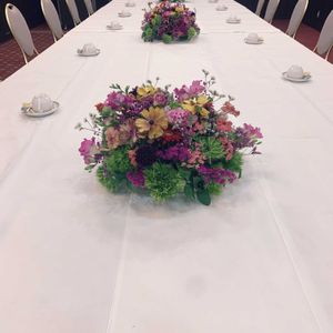 熊本テルサ 2階 つばき 談話室お客様が少しでもリラックスできる空間に花を添えて欲しいとのご依頼でテーブルアレンジ花を配置させていただきました。