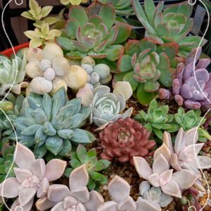 JUNさんの寄植えにヒントを貰って ハゲ散らかした寄植えの真ん中に お一人様では上手に育てられなかった ルンヨニー(こちらもハゲ散らかし)を 持ってきました! あとはダイソーのマッコスと黄麗をプラス で、ここで最近の100均多肉に物申す‼️ 昔はちゃんと根の張った苗だったのに 今はカット苗を土に置いただけで直ぐ出荷されてる⁉️ ↓ソロからグループへ