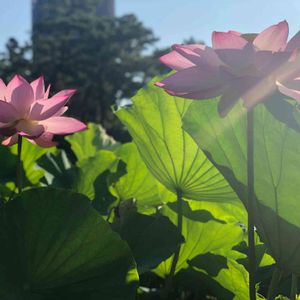 💠蓮の花💠 朝陽☀️に照らされて咲いています✨ カメラマン達に囲まれていました📸 🏷白山さま⛩のお花 (蓮まつり開催中)