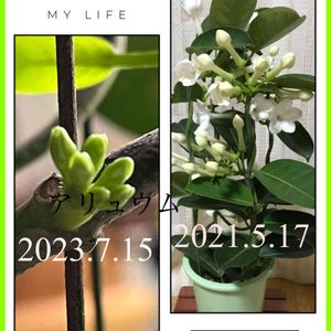 2年前の母の日に息子夫婦から貰ったお花、とっても香りが良くプックリとした、白いお花が咲いていました。余り咲かないので、剪定してしまおうと、何時も思っていた最中、突然の成長👀新芽も出てくる‼️そしたら花芽もあった😁やっと咲いてくれる様です👍剪定しなくて良かった😆待っ事の大切さを知りました😊✌️