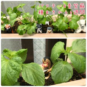🌱パクチー&青紫蘇 成長記録🌱 パクチーと青紫蘇の種をまいてから6週間⏳ こんなに大きくなってきました🙌 memo✍️ 3/11 種を濡らしたキッチンペーパーの上で一晩寝かす 3/12 種まき(ビニール温室内) 3/24 発芽(ビニール温室内) 4/8 定植(ビニール温室外)