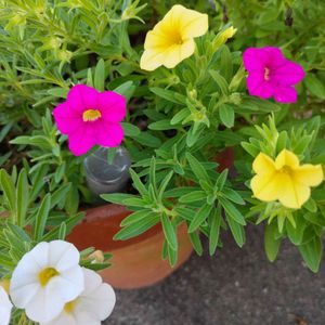 カリブラコアさんが久々に三色揃ったよ(◍•ᴗ•◍)❤ピンクの株小さすぎ🤣黄色と白色に負けていた。ピンク株どうしたらいいか誰か教えてください🙏
