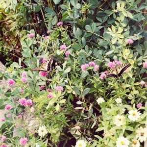お花さんにキアゲハ2頭🦋🦋のお客さま💓仲良くお食事してるね。