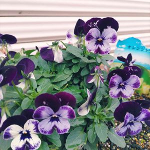寄せ植えのパンジーがやっと咲いてくれました🤭