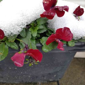 車庫の前で咲いているビオラさん🫢昨日まで雪をかぶっていたけど今は少しずつ雪がとけだしてお花の顔がみれたよ🤣でも、明日からまた雪が降るので頑張れ〜🎶って応援エールを送ります💪