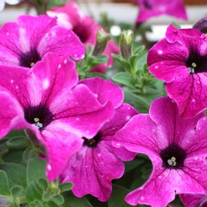 「ペチュニア サーカススカイ」です💕 本当は「ナイトスカイ」というブルーのペチュニアが欲しかったのですが、なかったのでサーカススカイを購入しました🥰 ピンクのお花に白い斑点がポツポツ・・・かわいい~?! ペチュニアのお花もいろいろな品種がありますね✨