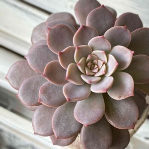 素敵なくすみカラーのデビー 𖧷 ⁺. しかし、葉がペラペラだなぁ… どうすればぷくぷくの葉になるのかなー(^^;)