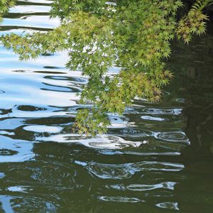 おはようございます。 お池に青モミジが。 あと数日すれば色づいてくるのかな?