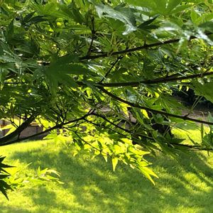 雨上がりのお庭。にわか雨。とっても晴れやかな気分の青もみじ。